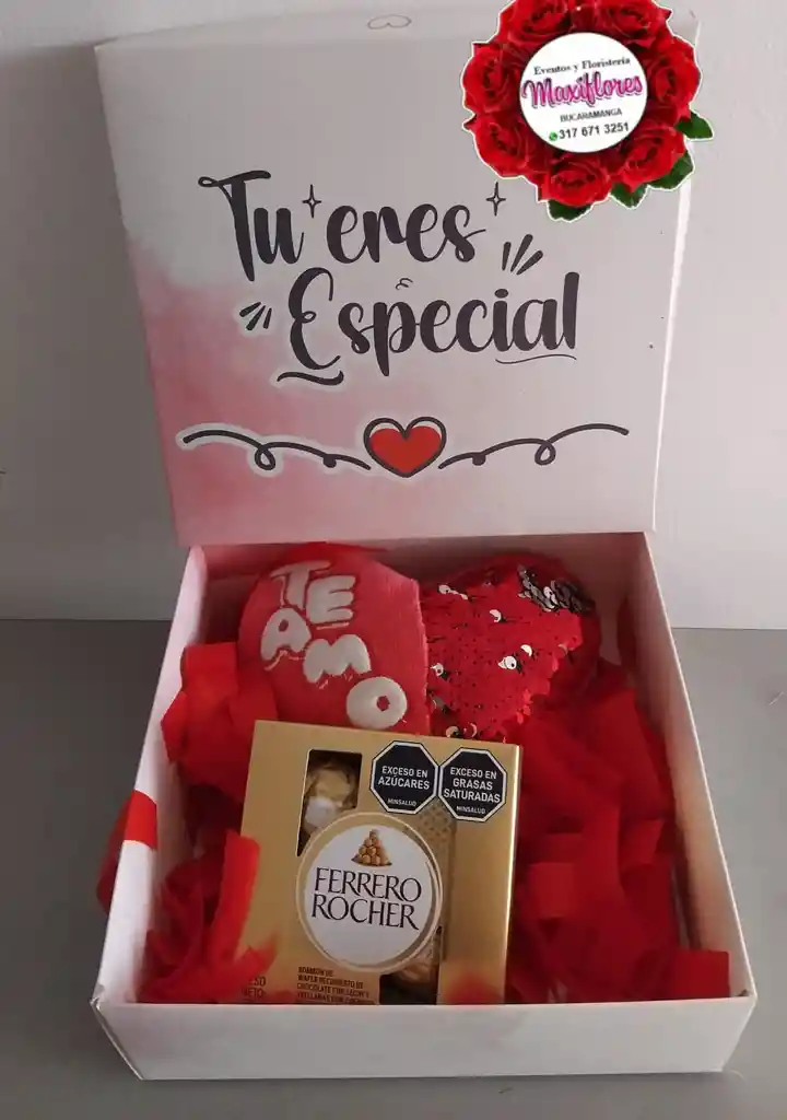 CAJA CON CORAZON AMOR Y CAJA CHOCOLATES 4 UNIDADES
