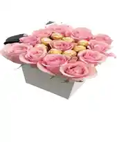 Caja cuadrada de rosas rosadas con chocolates Un detalle dulce y elegante con 12 rosas rosadas y deliciosos chocolates, perfecto para demostrar amor y ternura. Nota: La flor puede ser sustituida dependiendo de la disponibilidad de color y del producto. "Mensaje Personalizado" máximo de 30 caracteres (Dejar el mensaje en el chat, los comentarios no se previsualizan para la tienda, por lo que si se dejan allí no podrá ser incluido).