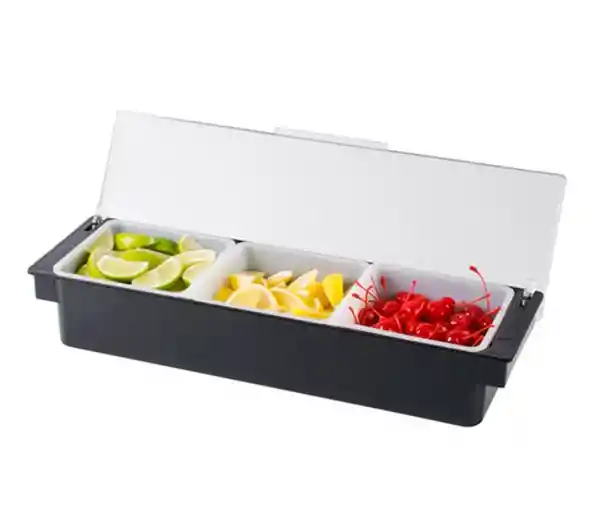 Almacenamiento higiénico para condimentos, aderezos y más. Su tapa transparente protege proporciona visibilidad de contenido para que pueda ver cuando el suministro este por agotarse. Material: plástico