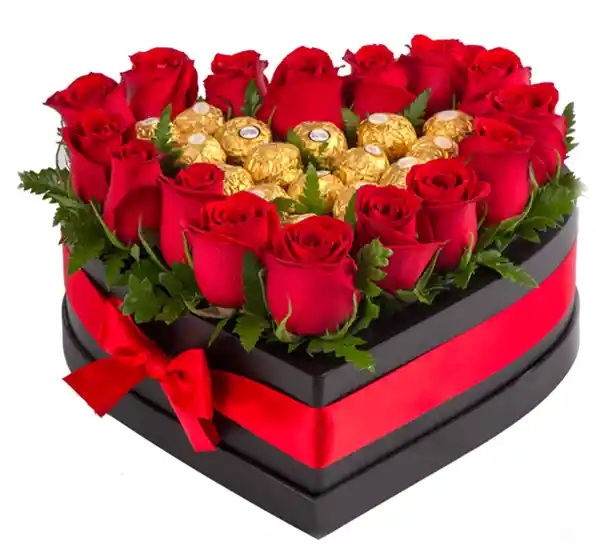 Hermosa caja reutilizable en forma de corazón, con 12 chocolates ferreros, tarjeta personalizada con el mensaje que gustes, cinta decorativa.