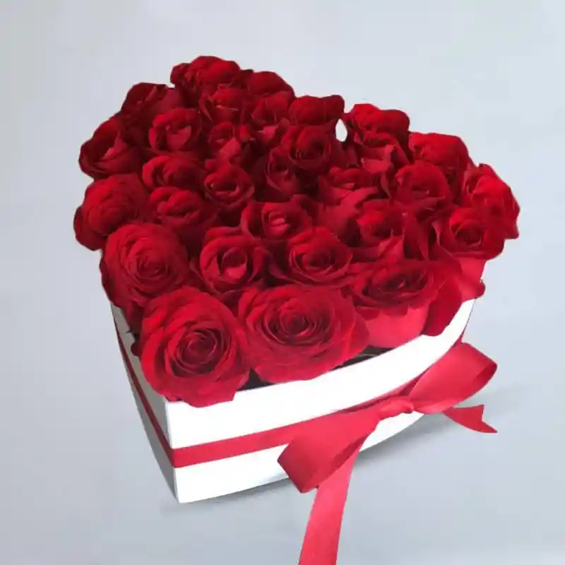 hermosa caja reutilizable, en forma de corazon, en rosas rojas, yitsofilia, lazo decorativo y tarjeta personalizada