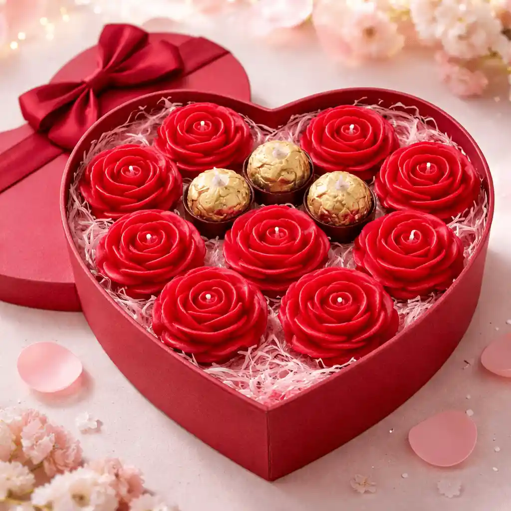 Sorprende con un detalle único y lleno de encanto. Esta hermosa caja en forma de corazón incluye 9 velas artesanales en forma de rosa, cuidadosamente organizadas para crear una presentación elegante y romántica. Ideal para cumpleaños, aniversarios, fechas especiales o para demostrar tu cariño de una forma original. Incluye: • Caja decorativa en forma de corazón • 9 velas aromáticas en forma de rosa • Presentación lista para regalar Perfecto para sorprender con un detalle delicado, especial y memorable.