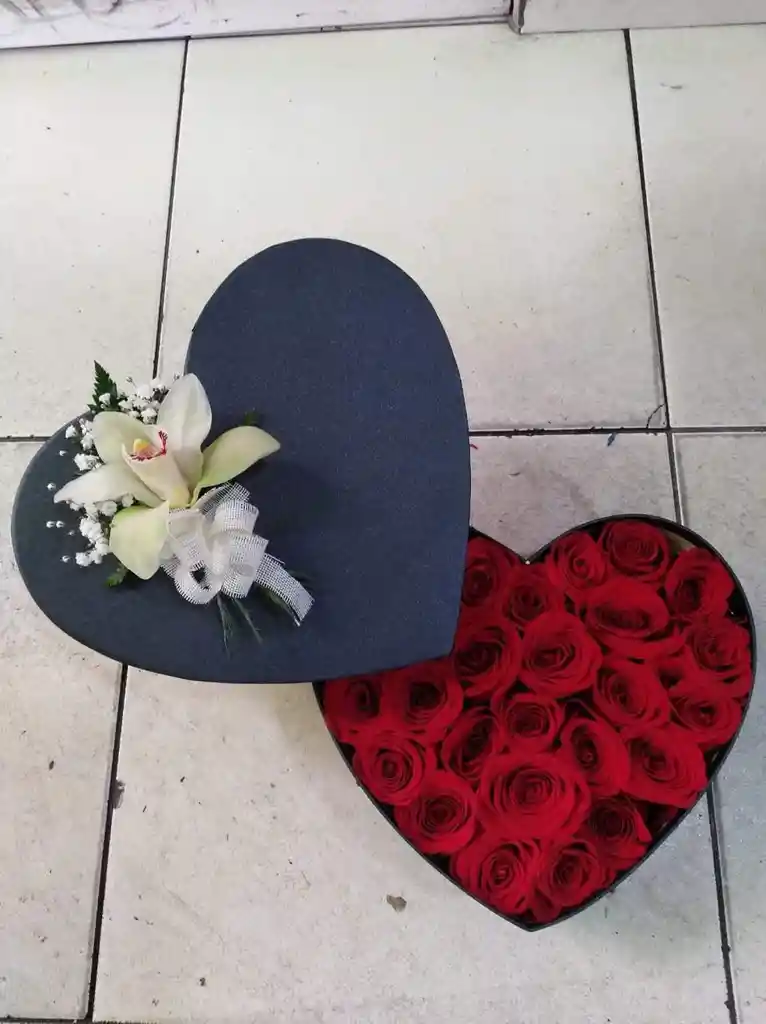Caja Corazón con Rosas y Aplique Personalizado Sorprende a esa persona especial con nuestra Caja Corazón adornada con un elegante aplique, diseñada para transmitir amor y emociones únicas. Esta hermosa caja en forma de corazón está elaborada con materiales de alta calidad y decorada con un toque romántico que realza la delicadeza del arreglo floral. Características del producto: 🌹 Rosas frescas y hermosas: Dispuestas con cuidado en tonos que puedes personalizar (rosas rojas, rosadas o blancas), ideales para expresar amor, ternura o admiración. 💖 Diseño exclusivo: Caja en forma de corazón que refleja pasión y elegancia, perfecta para aniversarios, San Valentín, cumpleaños o momentos especiales. ✨ Aplique personalizado: Incluye un detalle decorativo único, que añade sofisticación y hace que tu regalo destaque aún más. Esta caja es más que un simple arreglo: es un detalle que comunica sentimientos sinceros y deja una impresión imborrable. Sorprende con un regalo que enamora, conmueve y embellece cualquier ocasión especial. ¡Haz de cada momento un recuerdo inolvidable con nuestra Caja Corazón! 💝