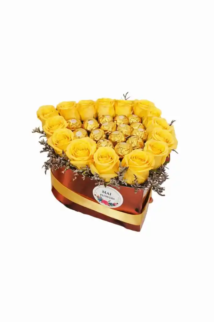 Haga que su amor florezca con nuestra caja Corazon con chocolates todos nuestros arreglos llevan tarjeta con mensaje personalizado a eleccion , se puede presentar alguna variacion sujeto a la disponibilidad del inventario manteniendo el equilibrio del diseño y el costo del articulo Si el producto llega en mal estado por favor comunicarse con la tienda para recibir una compensación.