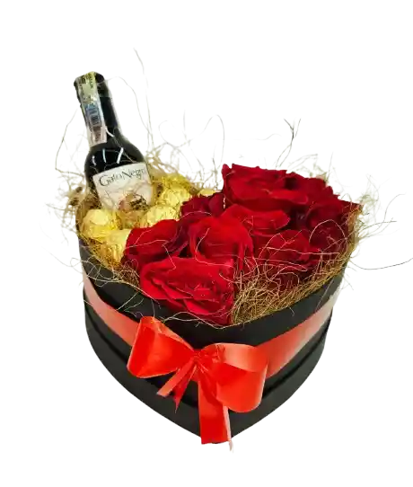Sorprende a esa persona especial con una elegante caja en forma de corazón elaborada en pasta dura, disponible en colores rojo y negro. ✨ Incluye: 10 rosas frescas (color sujeto a disponibilidad). Piba de gato negro 6 Bolitas de chocolate Tarjeta personalizada para expresar tu mensaje único. Moño decorativo en la tapa con vinilo personalizado (mensaje a elección). Un detalle sofisticado y lleno de amor, ideal para ocasiones especiales como aniversarios, cumpleaños, San Valentín o simplemente para demostrar lo importante que es esa persona en tu vida.