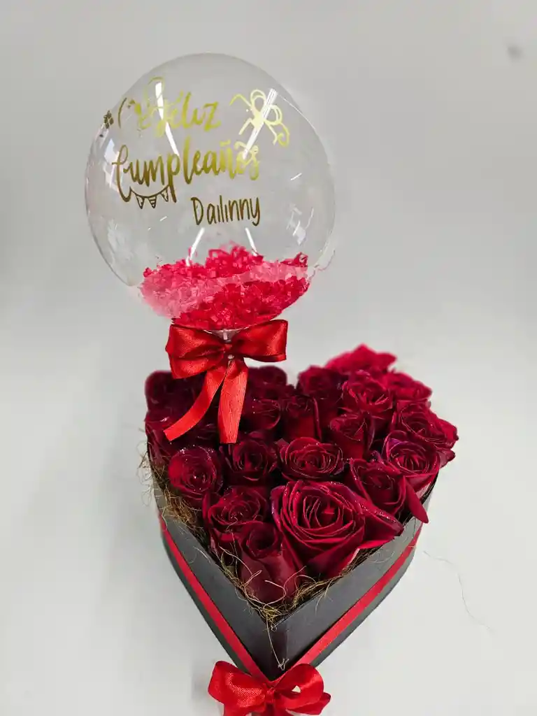 Sorprende a esa persona especial con una elegante caja en forma de corazón elaborada en pasta dura, disponible en colores rojo y negro. ✨ Incluye: 20 rosas frescas (color sujeto a disponibilidad). Globo burbuja personalizado Tarjeta personalizada para expresar tu mensaje único. Moño decorativo en la tapa con vinilo personalizado (mensaje a elección). Un detalle sofisticado y lleno de amor, ideal para ocasiones especiales como aniversarios, cumpleaños, San Valentín o simplemente para demostrar lo importante que es esa persona en tu vida.