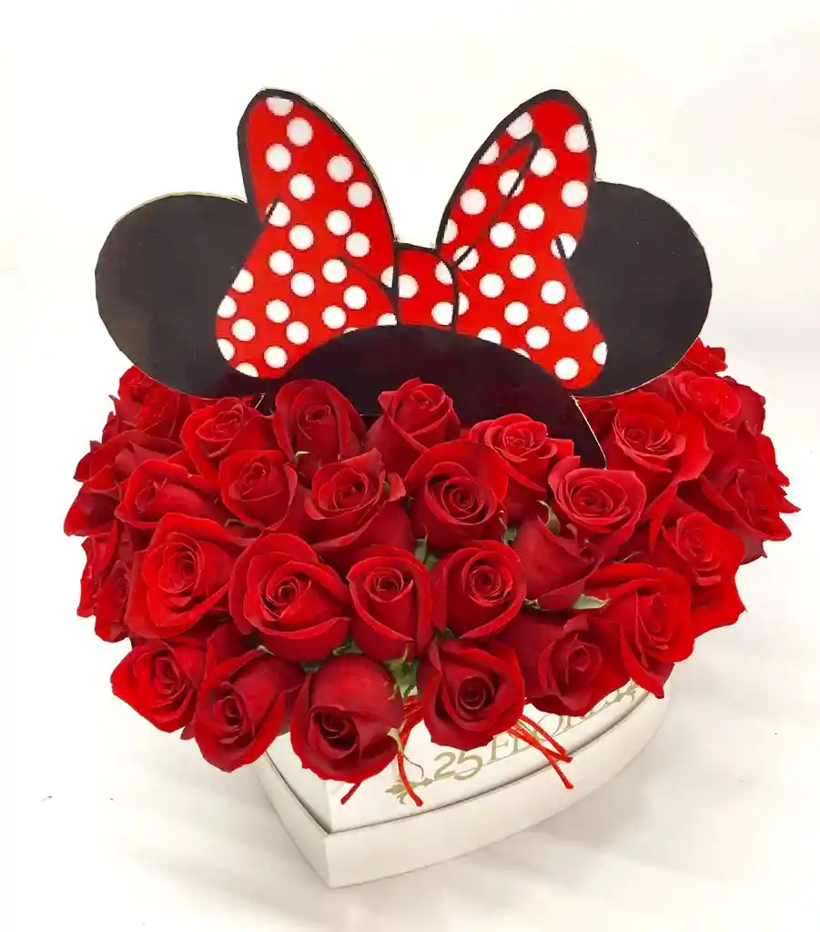 36 ROSAS ROJAS FREEDOM ACOMPÑADAS DE UN APLIQUE MINNIE, LLEVA MOÑO EN CINTA RAZO COLOR ROJO Y TARJETA DEDICATORIA. (Por favor realice su compra con anticipación, necesitamos mínimo dos horas para realizar este producto). Nota: 25Flores esta Ubicada en el Municipio de Chía, es muy IMPORTANTE que proporcione la siguiente Información, Indique en la Dirección, Nombre del conjunto, Numero de la torre, Numero del Apartamento, Indique si es vereda y Nombre del Barrio. Si es un periférico comuníquese con nosotros al WhatsApp 315-5143545.