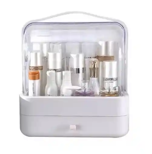 TENEMOS TIENDA FISICA EN LA CIUDAD DE CALI Caja Cosmetiquera maquillaje organizador portátil un cajón Ref. LD-388 «« DESCRIPCIÓN »» Preciosa caja cosmetiquera con un diseño elegante y moderno, que mantendrá tus pertenencias protegidas. Por lo mismo, es practico y perfecto para colocarlo en tu habitación o baño sin miedo a que las cosas se mojen o deterioren por el polvo. Es multifuncional y su capacidad te permitirá llevar contigo gran parte de tus cosméticos en diferentes formas, tamaños y mantenerlos organizados todo al mismo tiempo. Sus tres espacios divididos y protegidos por la tapa en acrílico transparente te harán aún más fácil la tarea de encontrar los pequeños o grandes objetos que quieras guardar y a su vez protegerlos del polvo o agua. Sus compartimentos en la parte inferior es del tamaño ideal para tener un fácil acceso a tus joyas u otros objetos. «« CARACTERÍSTICAS PRINCIPALES »» Cubierta superior transparente que evita que los cosméticos y el maquillaje se expongan al polvo o al agua. Diseño elegante y portátil Gran capacidad de almacenamiento «« ELEMENTOS INCLUIDOS »» Cosmetiquera «« DIMENSIONES »» 18 cm x 26 cm x 29 cm