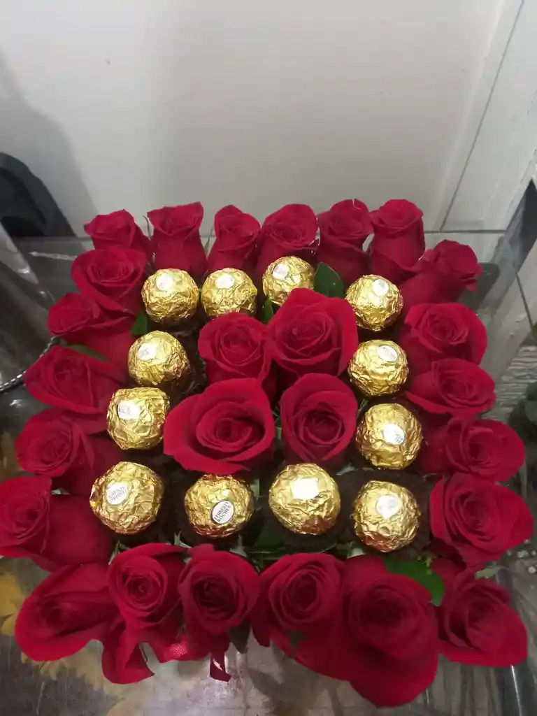 Caja cuadrada con dos docenas de rosas rojas o color según disponibilidad 12 ferreros y tarjeta personalizada