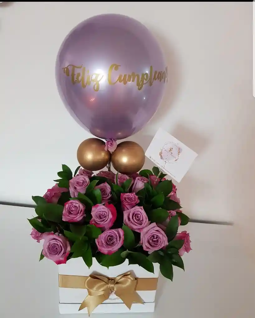 Caja Cuadrada Con Rosas Y Globo