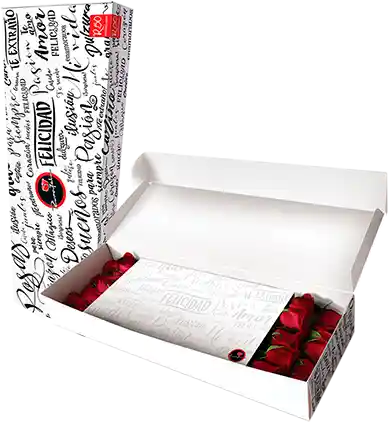 Dimensiones 60 cm x 20 cm contiene 20 rosas, tarjeta, instrucciones de cuidado, alimento para flores