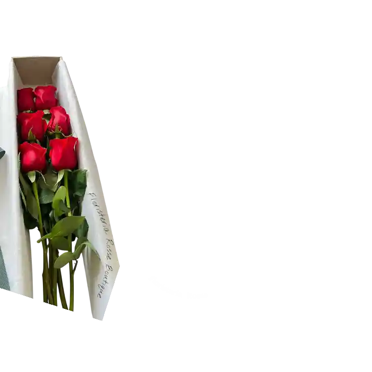 Hermosa caja floral con 6 rosas rojas frescas, cuidadosamente organizadas para crear un detalle elegante y lleno de pasión. Ideal para aniversarios, fechas especiales o para sorprender con un gesto romántico.