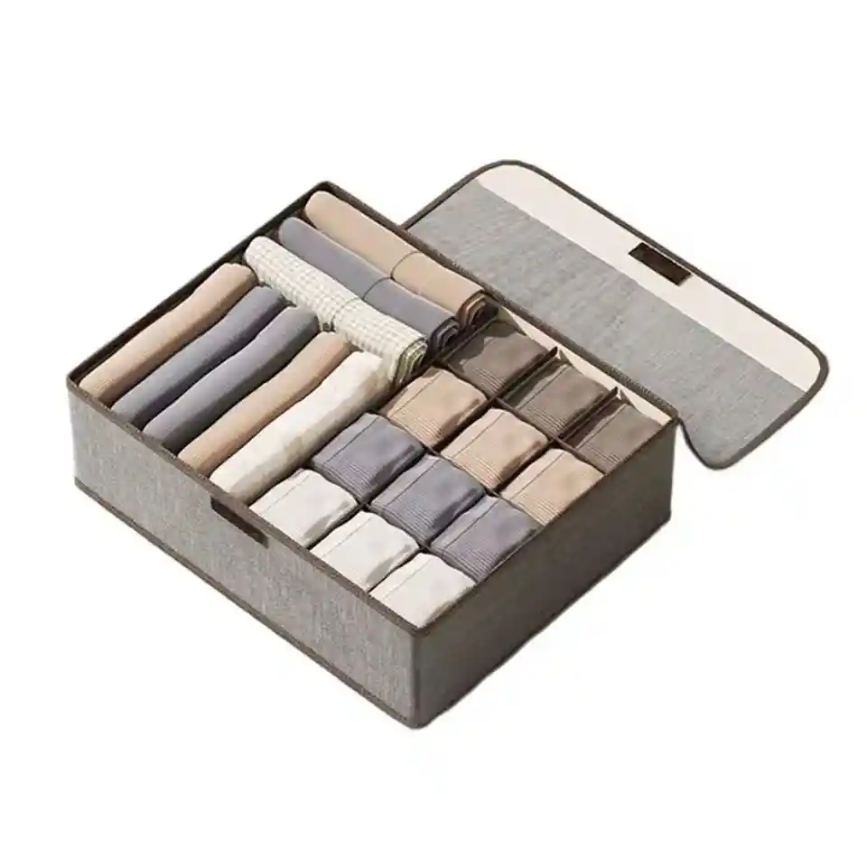 Versatilidad de uso: ideal para guardar calcetines, bragas y más en cualquier habitación. Protección contra polvo: caja con tapa para mantener los artículos limpios y protegidos. Material de alta calidad: fabricado en lino de algodón resistente, ideal para uso prolongado. Capacidad amplia Organizador de 13 cuadrículas para ropa interior y calcetines. Diseño plegable Guardar espacio fácilmente, perfecto para el almacenamiento eficiente. Material: Algodón lino de alta calidad Tipo: Caja de almacenamiento de bragas y calcetines Capacidad: Gran capacidad para ropa interior y calcetines Diseño: Caja de almacenamiento con divisor de cajón y tapa Uso: Ideal para guardar calcetines, bragas, bragas y corbatas Rendimiento: Durable, plegable y fácil de almacenar Accesorios: Incluye divisor de cajón y tapa para protección y organización Disponible en color azul y gris