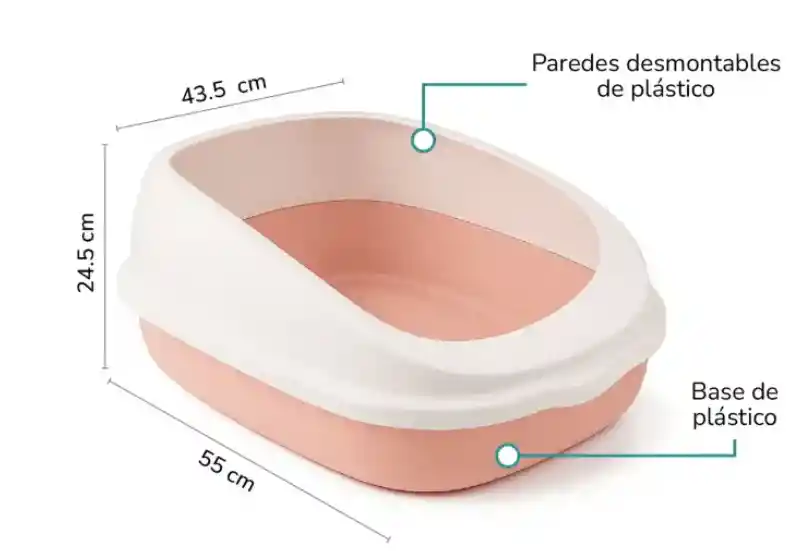 Haz que la limpieza sea más sencilla y dale a tu michi un espacio cómodo y con estilo. ¡El arenero rosado es la opción ideal para tu hogar! Color rosado: añade un toque moderno y alegre al espacio. Tamaño amplio (55 cm): adecuado para gatos de diferentes razas y tamaños. Borde desmontable: evita derrames de arena y facilita la limpieza profunda. Diseño abierto y ventilado: acceso cómodo y más frescura para tu gato. Incluye palita higiénica: simplifica el mantenimiento diario.