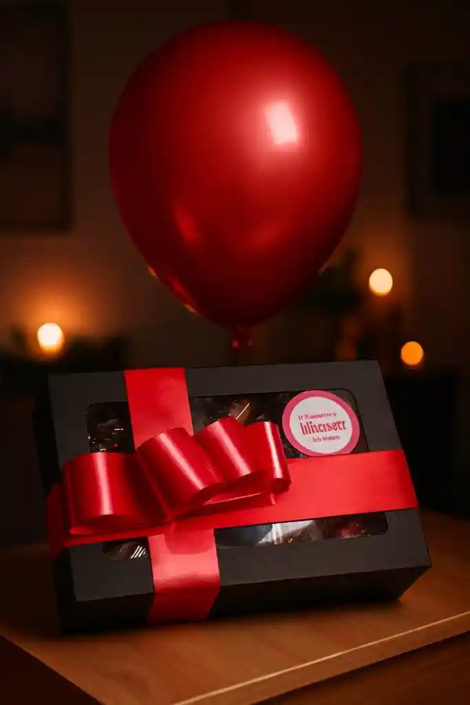 caja de 8 unidades de chocolates rellenos en una hermosa caja , que lleva tu mensaje personal y un globo sencillo incluido