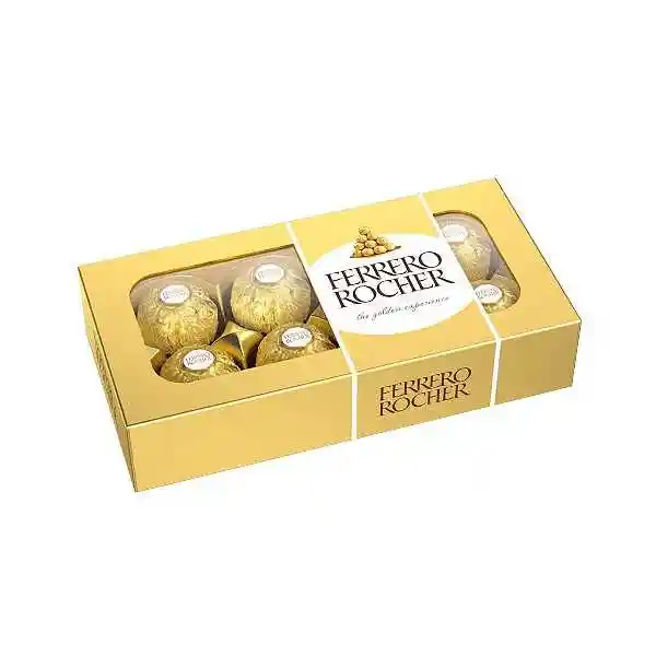 Chocolate ferrero Rocher mezcla entre chocolate y avellanas estuche de 8 bombones ideal para regalar y o complementar tus detalles de arreglos florales incluye tarjeta personalizada Nota si desea agregar mensaje a la tarjeta dejar en el chat