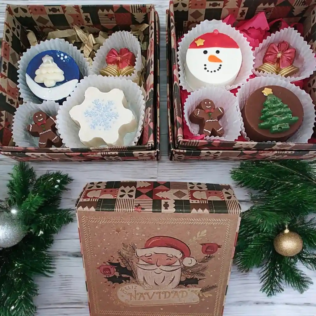 Caja de Chocolates edición Navidad ,10*10cms diseños surtidos incluye: 2 chocolates medianos rellenos de diferentes sabores 2 chocolates pequeños sin relleno Moño decorativo en cinta tela Sabores disponibles: (cada sabor tiene un diseño distinto) coco fresa Mora arequipe frutos rojos frutos amarillos crema de café Nutella Vainilla