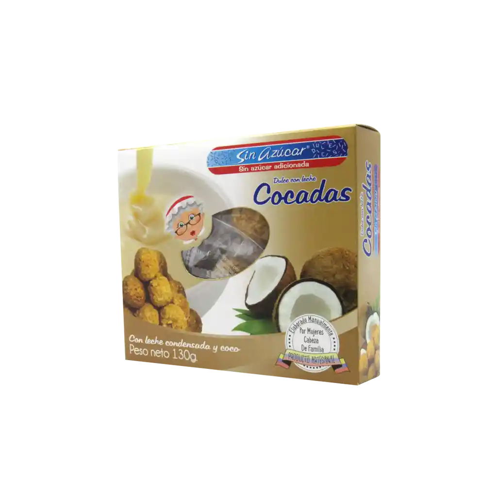 130gr Deliciosas colaciones de coco elaboradas con coco fresco y leche condensada. Sin azúcar añadida. Calorías 60 Grasa total 3.5 g Carbohidrato total 7% Azúcares 2 g Proteína 1 g