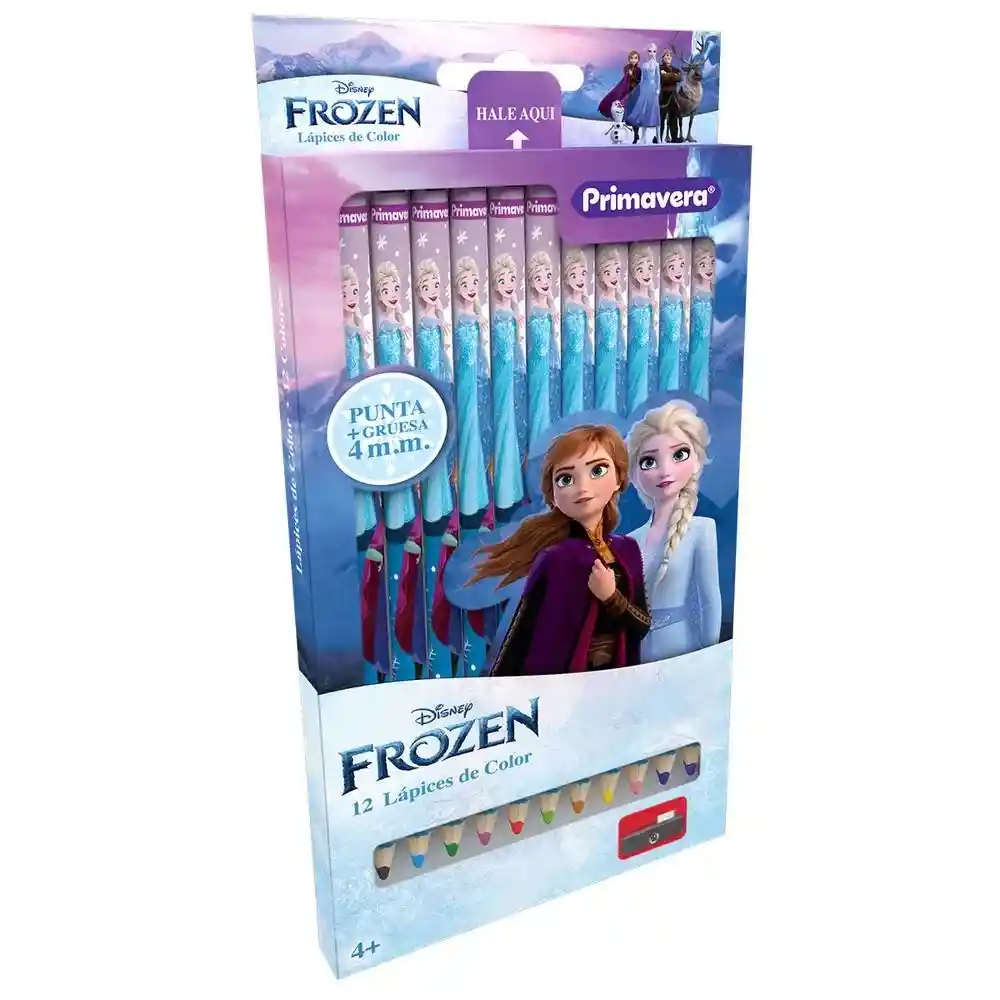 Colores Estampados de Niña Motivo Frozen Punta Gruesa, Trazo Suave, Incluye sacapuntas Caja x12 colores