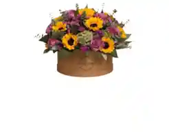 Caja de 10 girasol mini 12 rosas morada Nota: La flor puede ser sustituida dependiendo la disponibilidad de color y del producto “Mensaje Personalizado” máximo de 30 caracteres (Dejar el mensaje en el chat, los comentarios no se previsualizan para la tienda por lo que si se dejan allí no podrá ser incluido).
