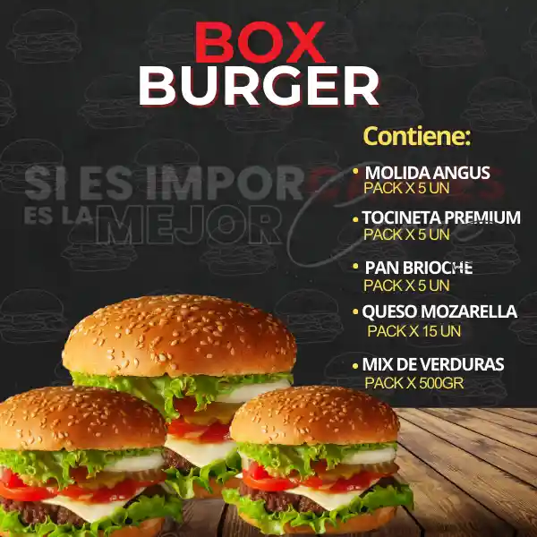 MOLIDA ANGUS x6, TOCINETA PREMIUM (PACK DE 500GR) PAN BRIOCHE x6 , QUESO MOZZARELLA.