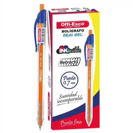 Caja de lapicero azul retractil punta fina 052 f Offi Esco x12 lapiceros