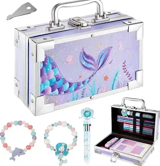 🧜♀️🎨 Caja de Lápices de Sirena con Estuche de Metal ¡Sumérgete en un mundo mágico de color con este hermoso set de lápices inspirado en las sirenas! Ideal para niñas, artistas jóvenes o fans del estilo fantasía, este set combina funcionalidad y encanto en un solo producto. 🌊🌟 🖍️ Contenido del set: ✅ Lápices de colores con diseño de sirena 🐚 ✅ Estuche metálico decorado con temática marina 🐠✨ ✅ Tapa resistente que protege tus lápices y facilita su transporte 🎒