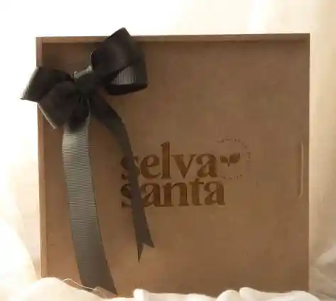Caja de madera contramarcada reutilizable, ideal para empacar nuestros productos y dar un toque mágico y especial. Incluye tarjeta personalizada y moño decorativo.