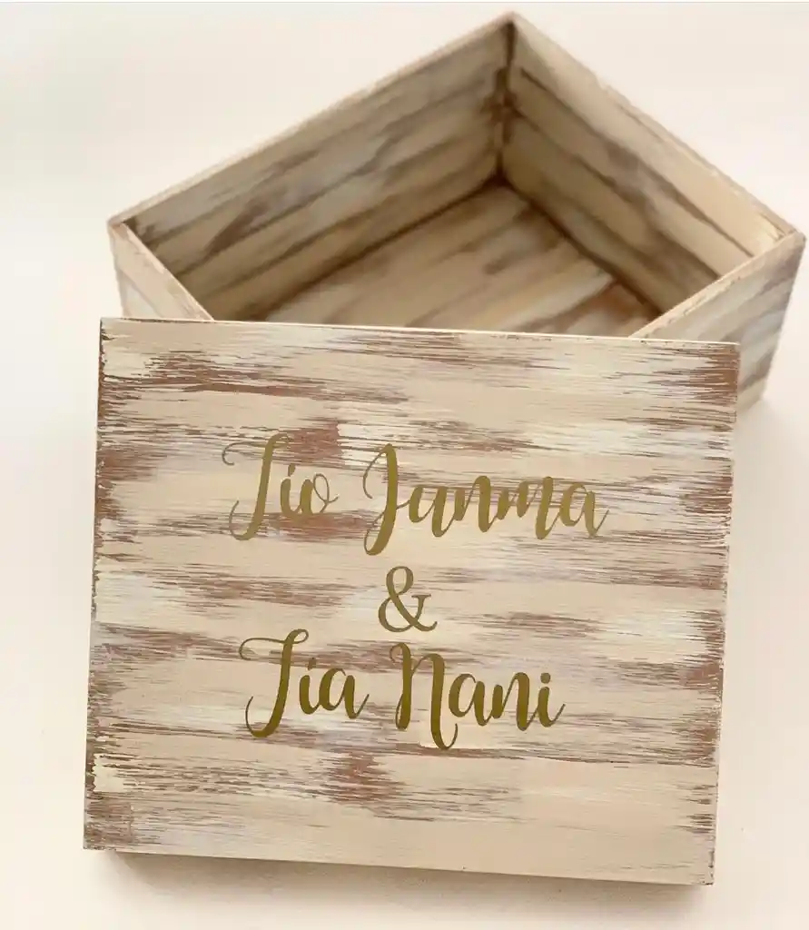 Caja en madera pintada en vintage. Medidas: 20x25 cm
