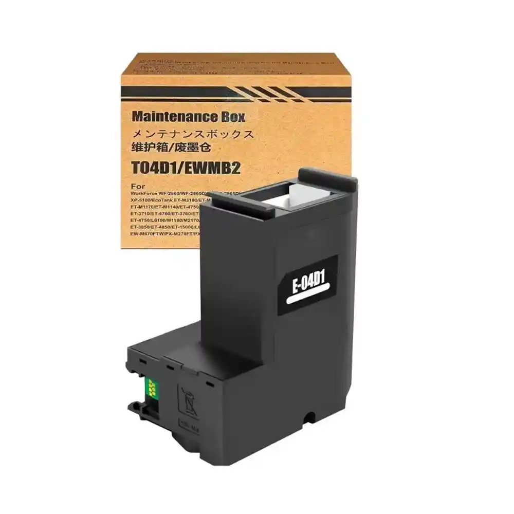 Caja de mantenimiento compatible T04D1 - T04D100 - E04d1. Referencias : compatible con impresoras cuyo Stiker de caja diga T04D1 T04D100 E04d1. Producto: Caja De Mantenimiento Para Impresoras Marca Epson Referencia: T04D1 Estado: NUEVO Presentación: CAJA Contenido: 1 CAJA Incluye Chip: SI Compatible con Impresoras marca: EPSON Referencias : Caja de mantenimiento de tinta residual T04D1, Chip de tanque L4150 L4158 L4168 L4160 L4170 L4165 L4156 L4166 L4167 L4100 L4153 L4163 L4169 L4151 L4260 L4360 L6490 L6191 L6161 L6171 L6490 L6270 L6490 M3180, M3170 XP-5200, XP-5100, WF-2960, WF-2860, ET-4760, 5810