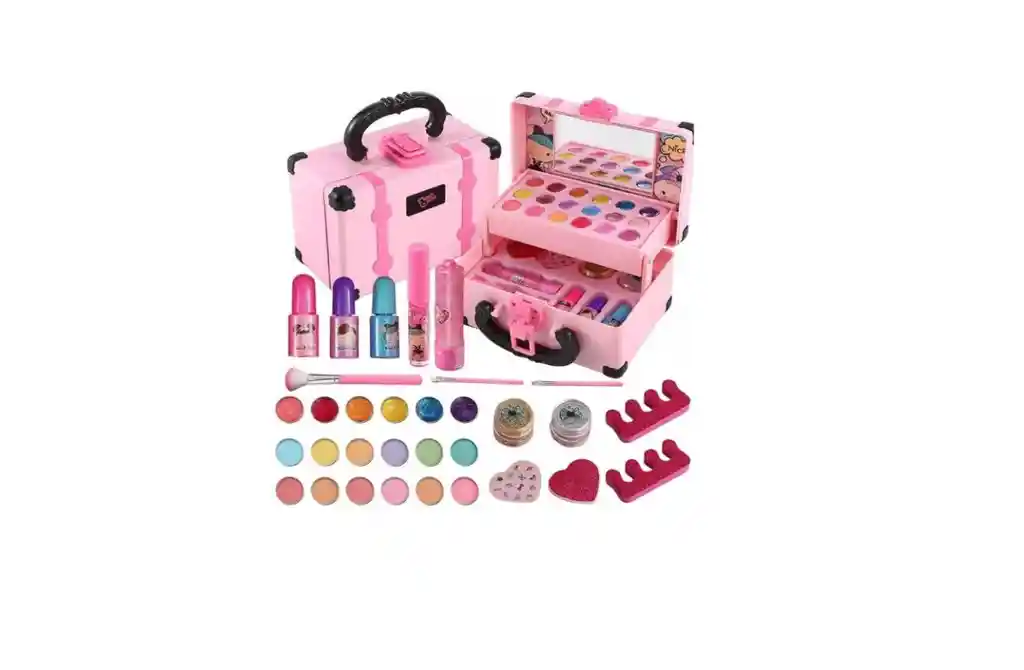 característica: 1. Adorable juego de maquillaje: nuestro kit de maquillaje lavable for niños contiene lápiz labial, rubor, sombra de ojos, brochas de maquillaje, esmalte de uñas, herramientas de manicura y más, que seguramente harán las delicias de cada pequeña fashionista. 2. Educación y entretenimiento: La belleza está en la naturaleza de todos y los niños no son una excepción. Nuestro kit de maquillaje contiene muchos accesorios, los niños pueden mejorar su creatividad, imaginación, capacidad estética y capacidad de aprendizaje mientras se divierten. 3. Kit de maquillaje lavable: Siempre que quieras regalarles a tus hijos un juguete que los mantenga seguros.