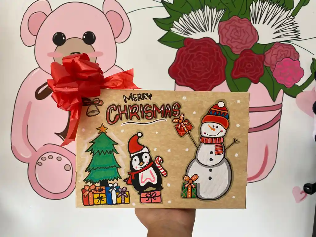 Incluye caja para empacar regalos decorada a mano con temática navideña