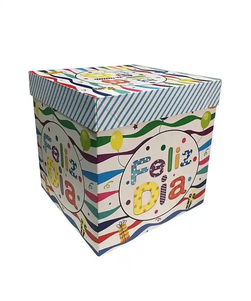 Caja De Regalo Cuadrada Feliz Día 21.5 x 21.5 Cm aprox. Estas cajas de regalos de alta calidad son perfectas para un buen detalle, especialmente para una fiesta de cumpleaños. Se envia desarmada