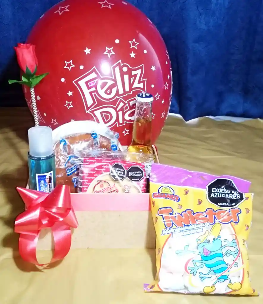 Caja de regalo para cumpleaños, detalle ideal para esa persona especial, sorpréndelo con este regalo que alegrará su día. NOTA: Por favor, realizar el pedido con 3 horas de antelación. Material: Caja de madera. Dimensiones: 15cm X 20cm. Contenido: 1und Caja de madera decorada con globo rojo y 1und rosa artificial, 1und Cerveza Corona extra 210ml, 1und Colonia fragancia color aleatorio, 1und Torta de queso 300gr, 1und Brazo de reina 80gr, 1und Malvavisco 71gr.