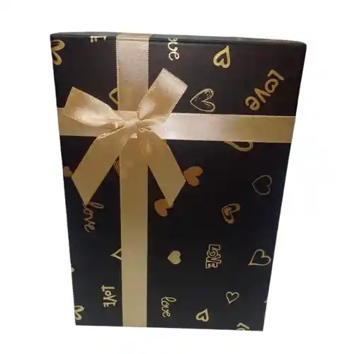 HERMOSA CAJA DE REGALO RECTANGULAR COLOR NEGRA CON ESTAMPADO LOVE. MEDIDAS: 19X12X.6.5 QUEDAN 2 UND DISPONIBLE