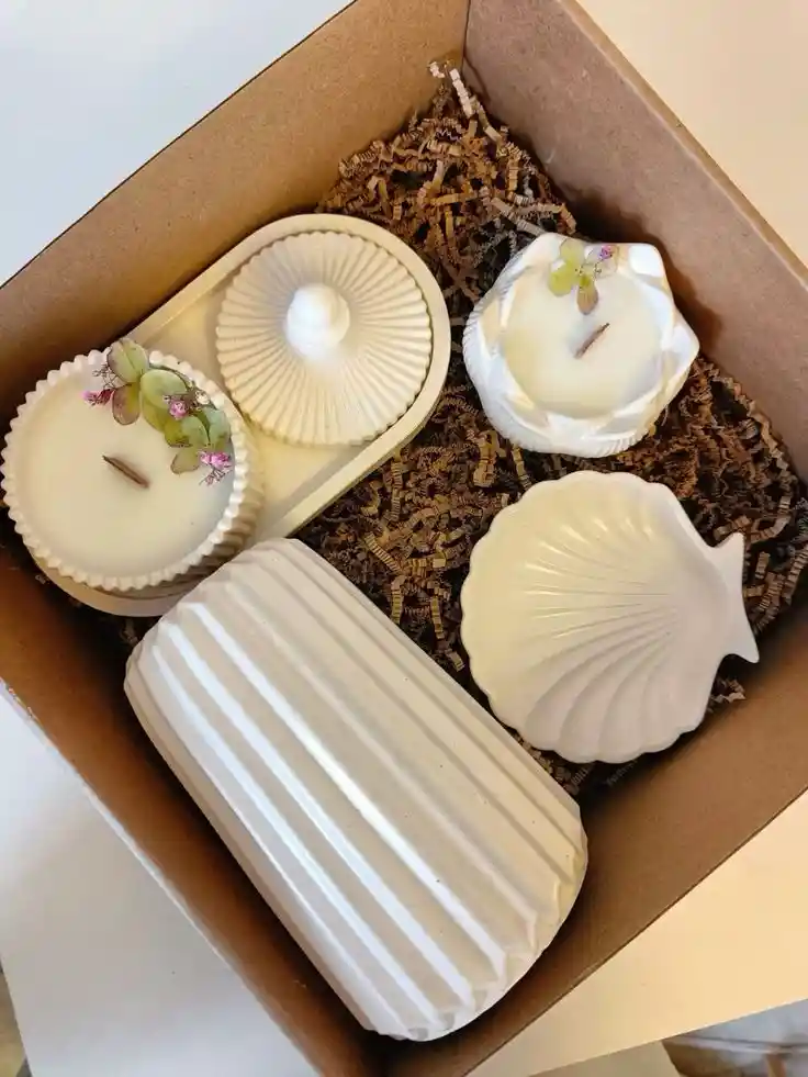 Caja de regalo velas, florero, joyero bandeja
