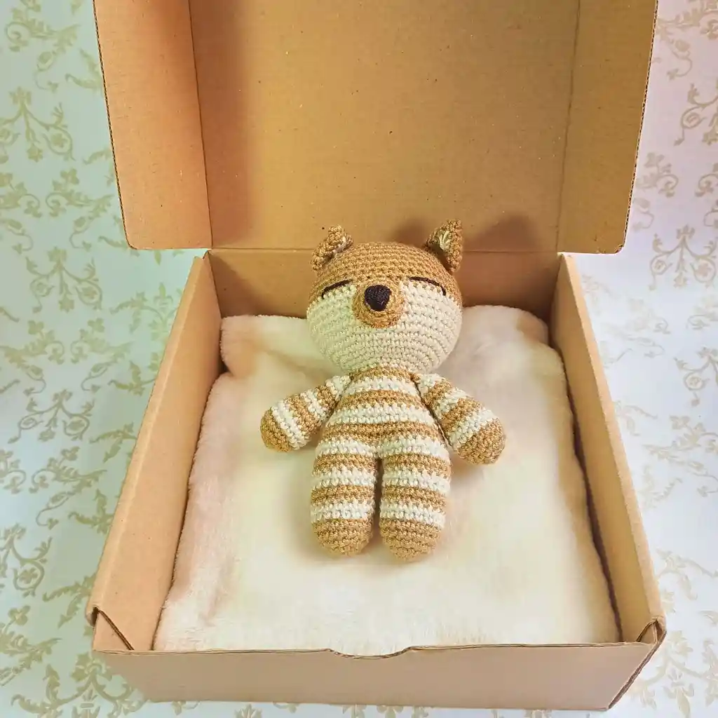 Caja de regalo diseñada para darle la bienvenida al bebé en sus primeros meses de vida, un bello y delicado detalle que contiene elementos que harán más cálida esta maravillosa experiencia. Excelente detalle para nacimiento, baby shower. Incluye: 1 Muñeco de apego en crochet tejido a mano y 1 suave cobija en tela de conejo. Este kit de regalo viene empacado delicadamente con una tarjeta de dedicatoria, déjanos un comentario para escribir tu mensaje especial. El diseño de muñeco a crochet varia según disponibilidad de inventario
