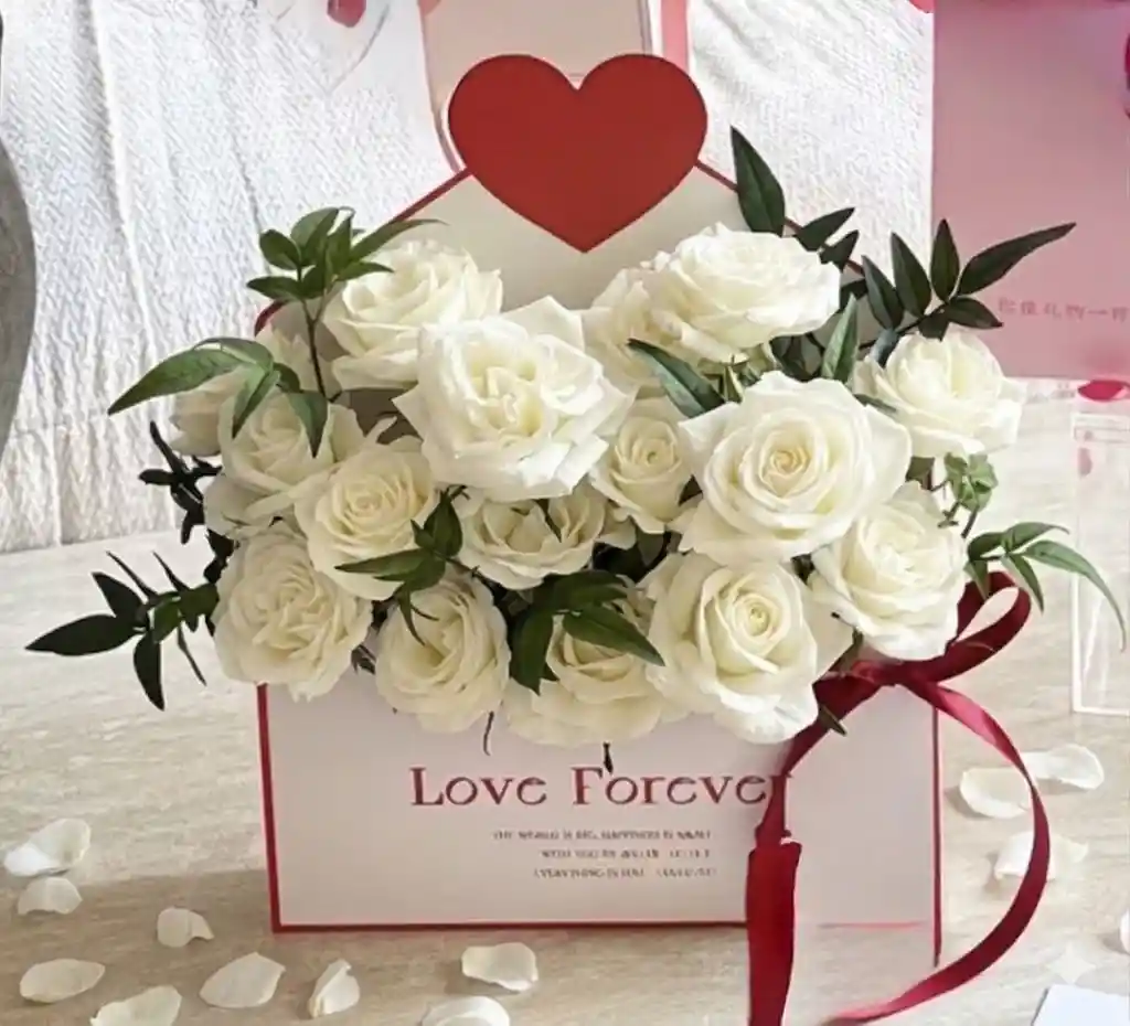 caja de 24 rosas con follaje