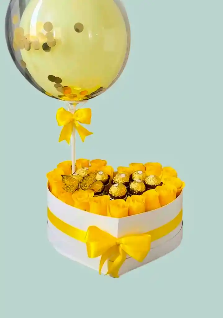 contiene rosas amarillas 10 chocolates decoración globos decoración tarjeta personalizada ETIQUETAS DE BUSQUEDA Ramo de flores Ramo de rosas Bouquet de flores Bouquet de rosas Arreglo floral Ramo de flores Amarillas Ramo de rosas amarillas