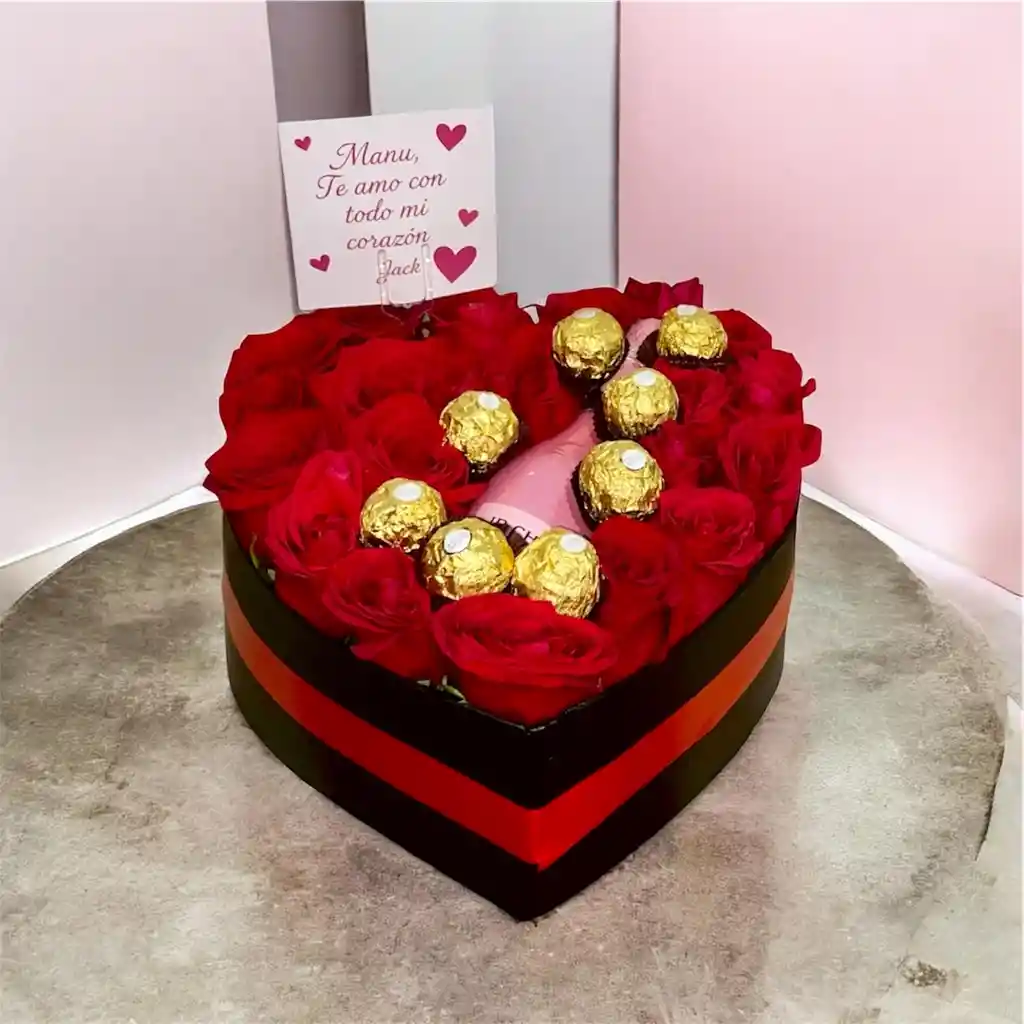 contiene 24 rosas rojas champaña jp 8 chocolates decoración tarjeta personalizada