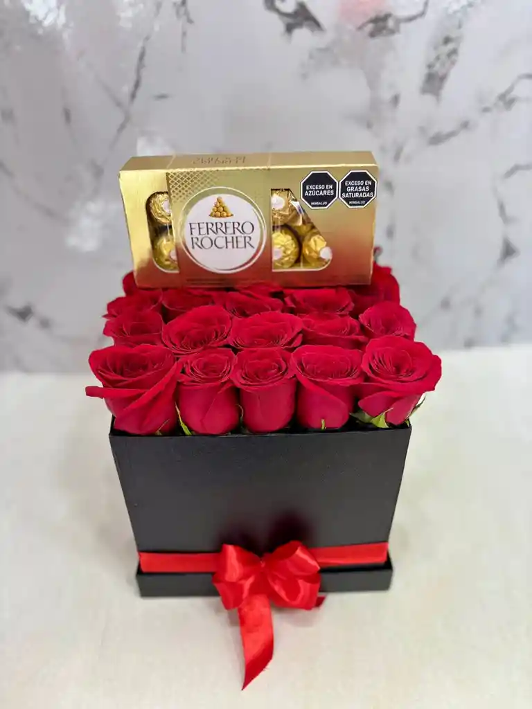 Caja romántica con rosas, Ferrero Rocher, el regalo perfecto que combina amor, dulzura y ternura en un solo detalle. El color de la rosa y la caja puede variar según disponibilidad. Si deseas nota agregar por medio de mensajes, de lo contrario no se enviara.