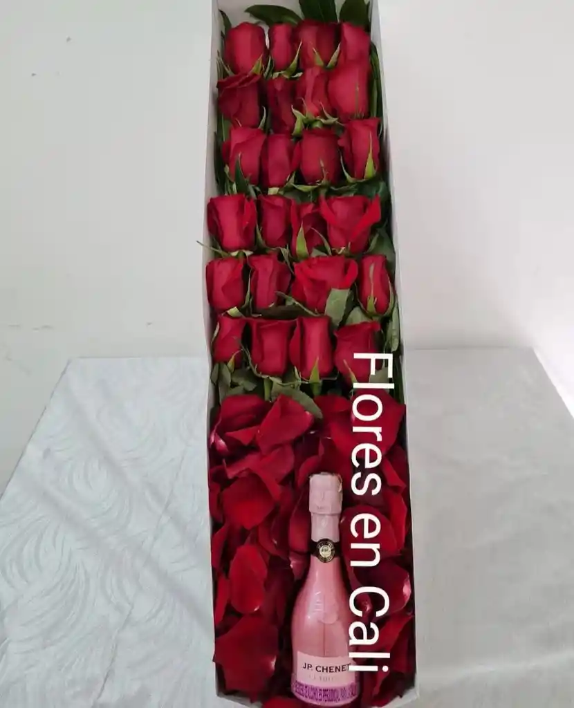 Caja Caja 24 rosas con botella pequeña de jp