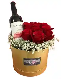 Caja de 10 rosas con vino y gypsophila Nota: La flor puede ser sustituida dependiendo la disponibilidad de color y del producto “Mensaje Personalizado” máximo de 30 caracteres (Dejar el mensaje en el chat, los comentarios no se previsualizan para la tienda por lo que si se dejan allí no podrá ser incluido).