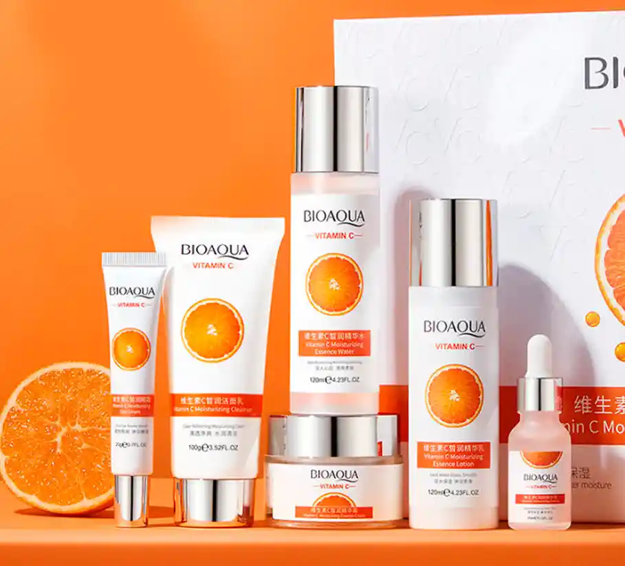 La caja de vitamina C Bioaqua en caja, está compuesto por 6 productos esenciales para una rutina de skin care completa, la vitamina C protege la piel contra los radicales libres y ayuda a prevenir el envejecimiento prematuro y los daños causados por el sol y la contaminación. La vitamina C Estimula la producción de colágeno El cual es esencial para mantener la firmeza y elasticidad de la piel. La vitamina C ayuda a estimular su producción, reduciendo la aparición de arrugas y líneas finas. Esta caja contiene los siguientes 6 productos. Jabón 100 gr loción tonificante 120 ml Tónico afirmante 120 ml Serum hidratante 35 ml Crema hidratante 50 gr Contorno de ojos en crema 20 gr Gracias a sus propiedades regenerativas, la vitamina C acelera la cicatrización de heridas y ayuda a reducir la apariencia de cicatrices y marcas.
