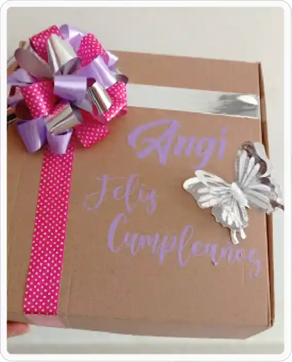DESCRIPCIÓN: Caja decoradacon Tarjeta personalizada Porción chicharron, Bollo, Queso, 1 manzana roja o verde, Picada de frutas, Dulce, Parfait, Cubierto.