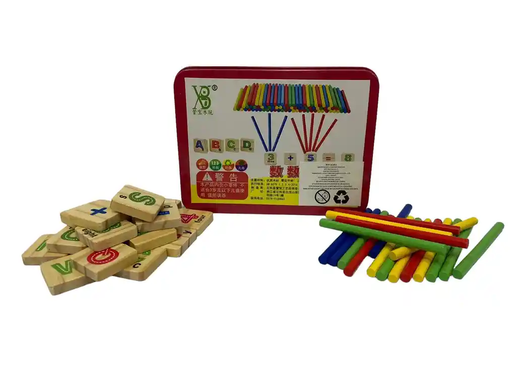 Caja Didáctica Para Matemáticas Con Fichas En Madera Y Palitos 27 Fichas en madera 52 Palitos