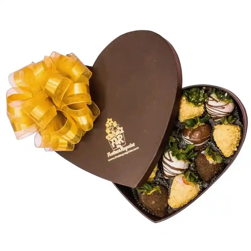 10 fresas con chocolate negro. 5 fresas con chocolate negro y grajeas.