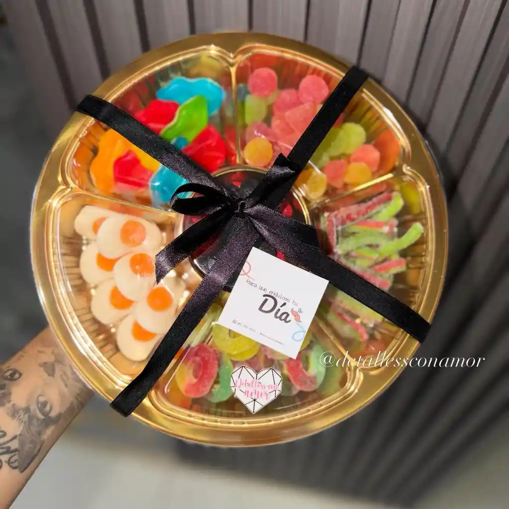 Sorprende con una experiencia llena de dulzura. Esta caja contiene 6 tipos diferentes de gomitas , te incluye una tarjeta personalizada y cinta decorativa personalizada. (Tamaño grande)