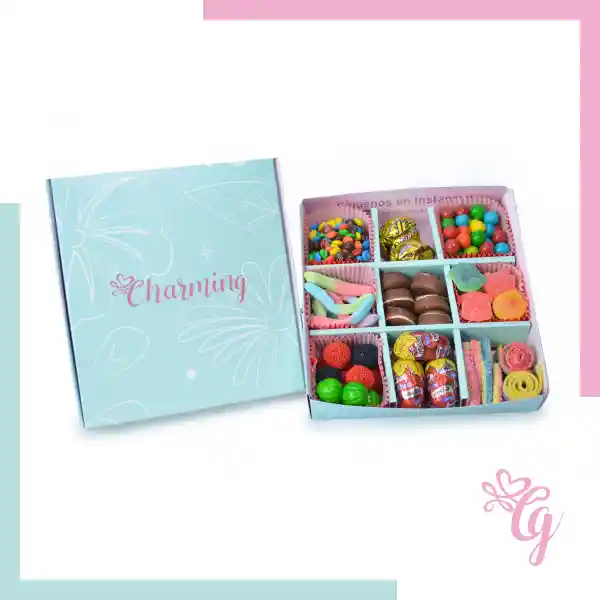 Este regalo en caja con 9 compartimentos, contiene: -30 Unidades de Agogó Tutti Frutti (Dulce masticable relleno de caramelo) -6 Choc Melos (Masmelos sabor a vainilla recubiertos con chocolate) -6 Moritas (Gomitas grageadas sabor a mora) -4 Sandías (Chicles con sabor a sandía) -10 Gusanitos Grissly (Gomitas sabor frutal) -1 Burbuja Jet (Chocolate de leche relleno con arequipe) -1 Mega Ball Choco Break ( Chocolate relleno de crema de avellana con trozos de maní) -4 Nuggets Nucita (Chocolate relleno con crema de leche, chocolate y nueces) -40gr de M&M (Grageas son sabor a chocolate) -4 Cables ácidos (Pintalenguas sabor a fresa) -4 Cintas de goma (Sabor manzana - melón) -8 Animales del mar (Gomitas de gelatina con sabores surtidos rellenas con líquido sabor a cereza)