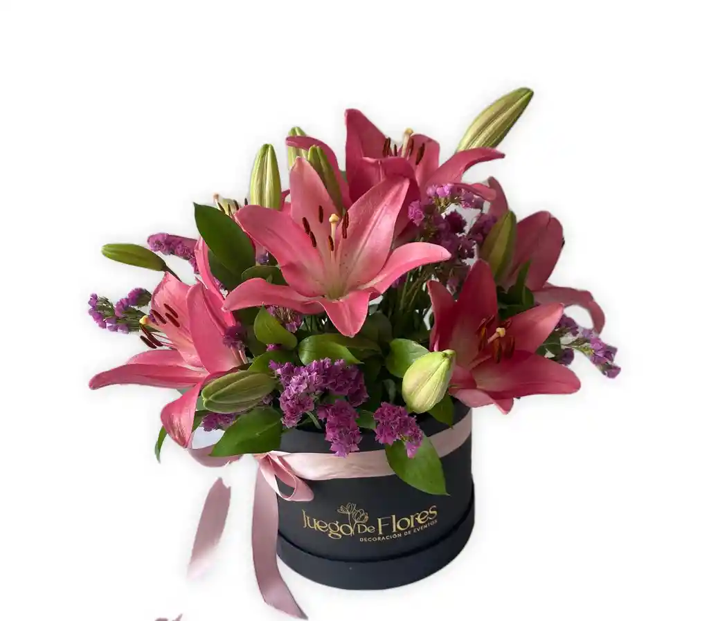caja con lirios rosados